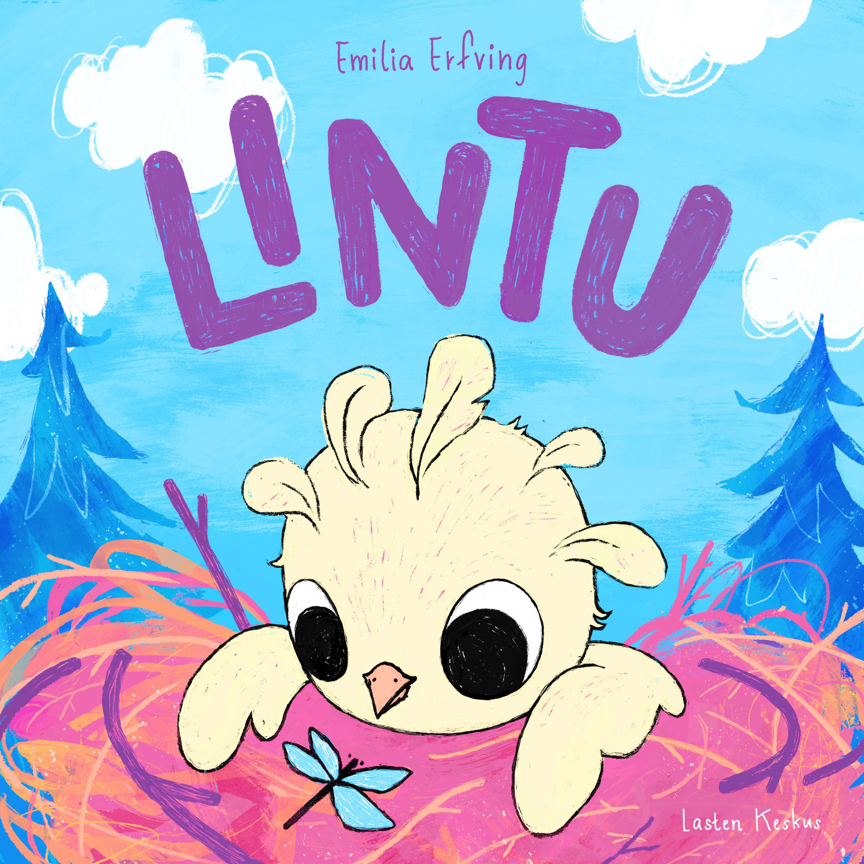 Värikäs, pahvisivuinen kirja kuvittaa ja sanoittaa linnun kautta lapsen kasvun ensi hetkiä, hoivaa, turvaa ja uusien taitojen harjoittelua. Tekstiin on koottu taaperolle tärkeitä sanoja, ja yhteinen lukuhetki tukeekin lapsen puheen kehitystä.